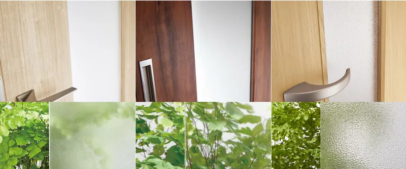 室内ドアの種類は主に、引き戸、開き戸の2種類が一般的ですが、扉のデザイン、ガラスやアクリル板など使用するパーツの材質、角窓や鏡板(パネル)など、装飾によって部屋の雰囲気が変わります。