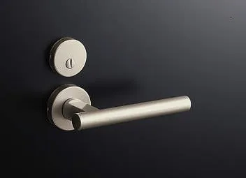角座と上質なハンドルを組み合わせたレバーハンドル。鏡面仕上げでつるりとした取っ手の質感が、洗面室にもふさわしい清潔な印象を与えるドアノブです。表示錠を選べば、トイレのドアにも合います。
