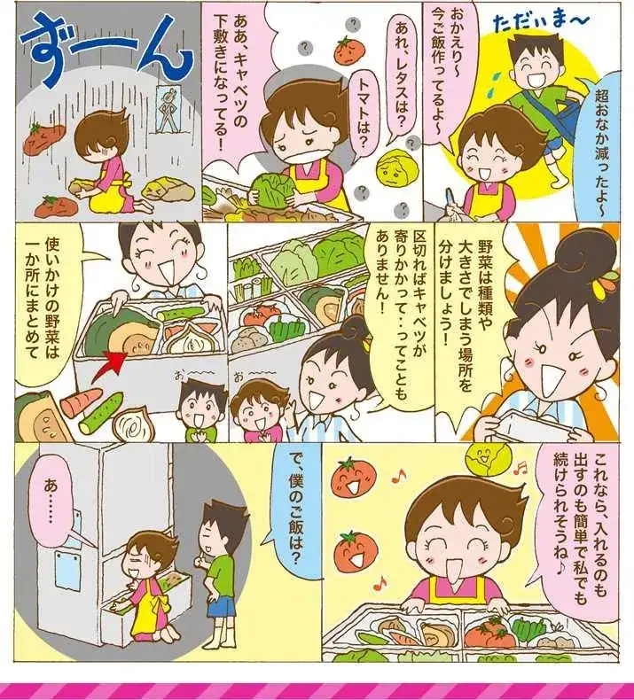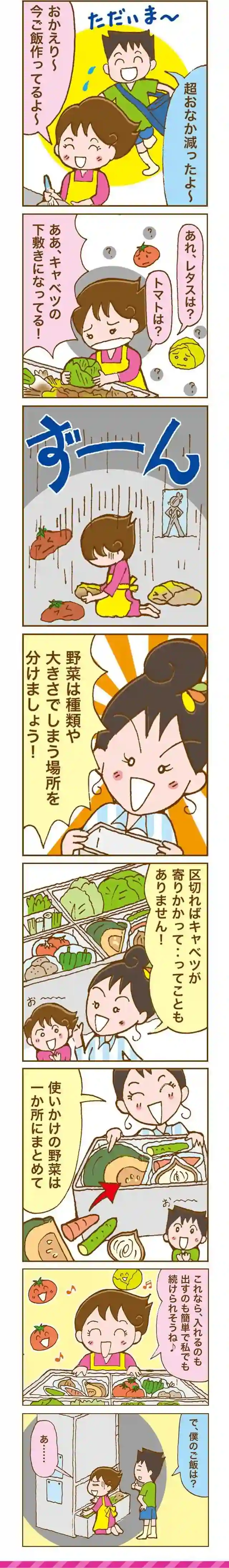 買ってきた野菜を冷蔵庫の野菜室にポンと入れてしまうと、潰れてしまったり、どこに置いたか分からなくなって、また買ってきてしまい、無駄にしてしまうこと、ありますね。