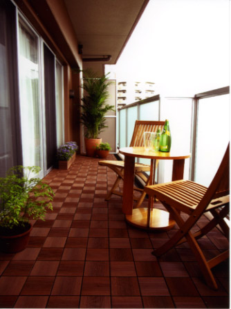 そんな中、本物志向、自然志向の高まりにあわせて、現在、最も注目されているのが、床に敷きつめるだけで、ベランダをナチュラル空間に変えてしまうウッドデッキです。ただし、天然木を用いたウッドデッキを直射日光や風雨に晒される“ベランダ”に施工した場合、色褪せや劣化が激しく、2〜3年で取替えなければならないといった欠点がありました。
