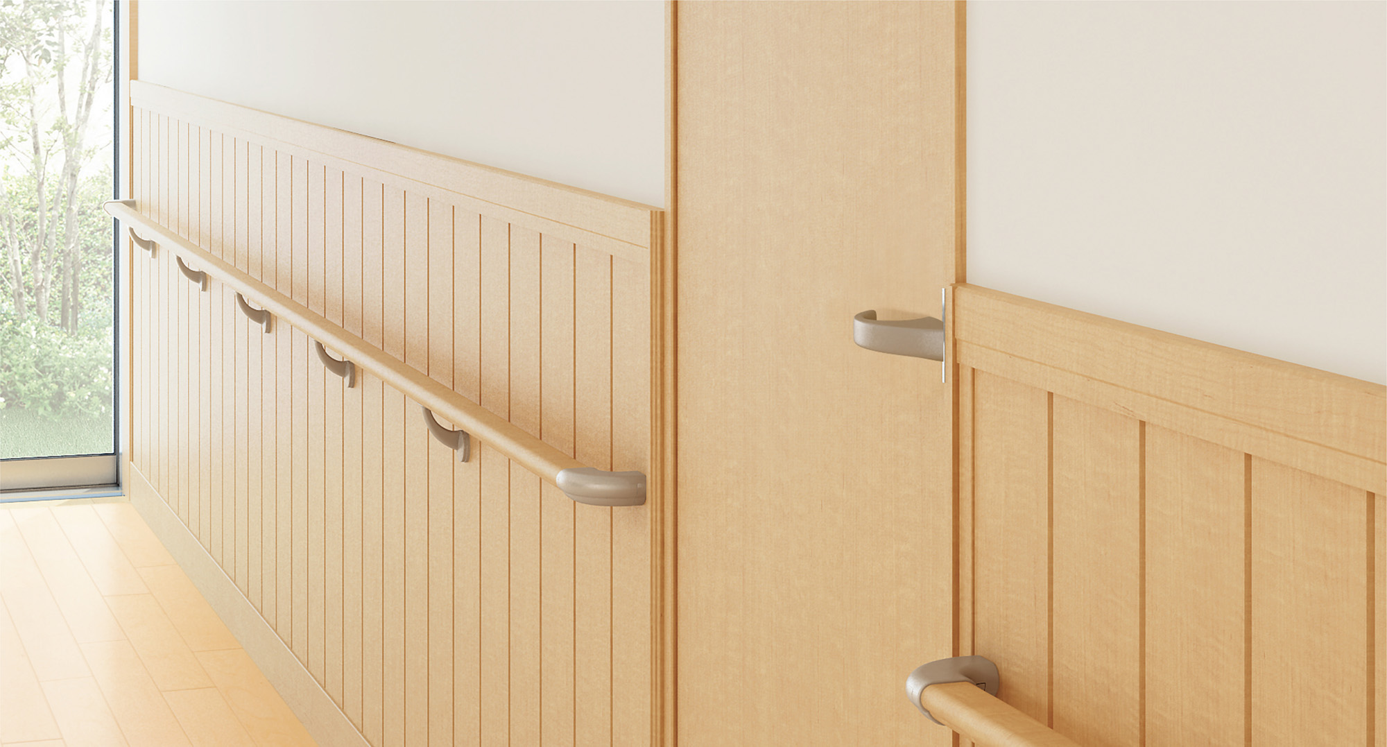 | キャプション | 壁材:システリアパネル リブワイド型 〈ミルベージュ色〉 |