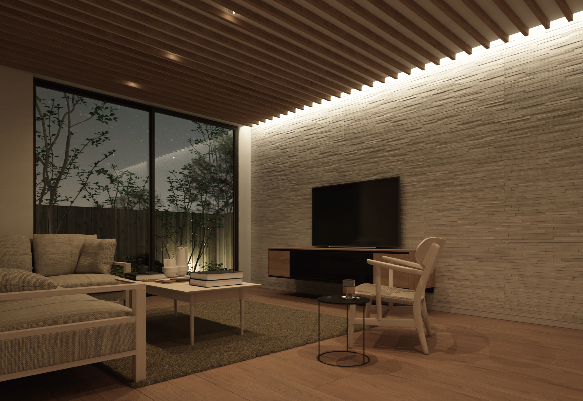 | キャプション | 壁材:グラビオエッジ フルッソ〈ホワイト柄〉 |