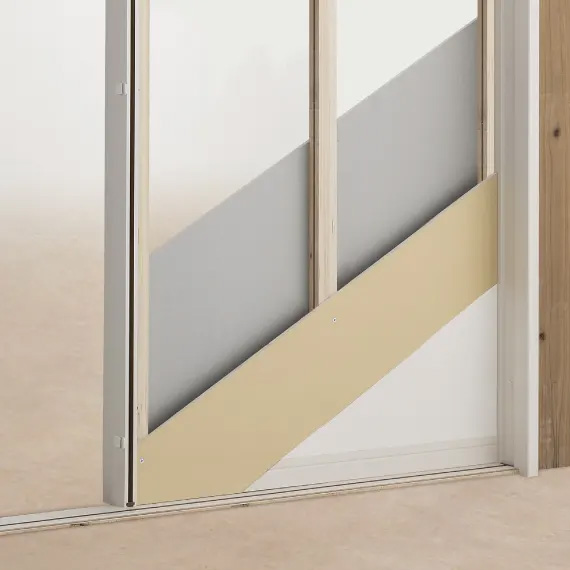 (12)控壁下地ユニット [オプション]\n短時間で、簡単に、強度のある控壁をつくれる下地ユニット。\n軸組タイプと薄壁タイプの2種類をご用意しております。施工する壁厚にあわせてお選びください。(写真は軸組タイプ)