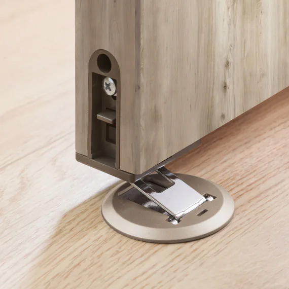 | キャプション | (7)内蔵ドアストッパー 開くドアを止め、レバーハンドルが壁に当たるのを防ぎます。ドアをロックすることもできます。ロックは指でカンタン操作。(扉横木口よりロックできます) ※ 内蔵ドアストッパーは扉のオーダー対応とドアストッパー本体の発注が必要です。 |
