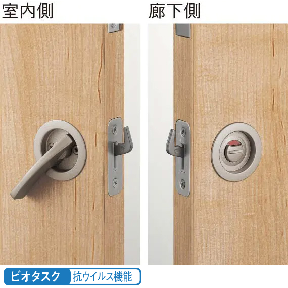 簡易カマ錠(表示錠)\n室内側は手がかりのいい大型のサムターン錠です。