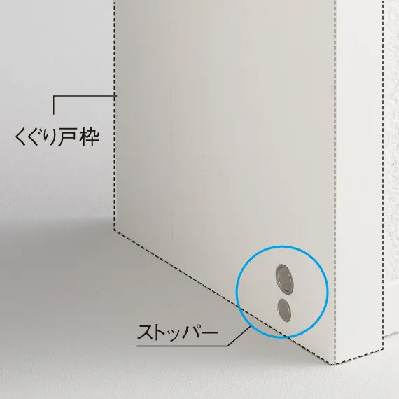 ■壁で仕切られた空間も自由に遊び回れます。\nくぐり戸がぴったり閉まるストッパー付き\nマグネットのストッパーがくぐり戸をキャッチ。ペットが通らない時にはぴったり閉まり、冷暖房の効率を下げません。また、片手で簡単に操作できるロック機能も装備しており、ペットの行き来を制限可能です。