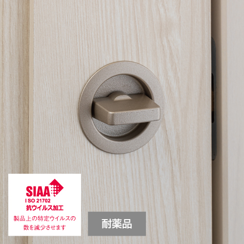 ねこが開けられないよう、レバーハンドルなし、両側サムターン錠が標準装備。