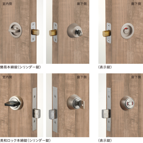 | キャプション | 錠を取付けることができます 用途にあわせて簡易本締錠・美和ロック本締錠・両側サムターン錠がお選びいただけます。 |