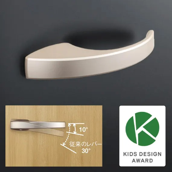| キャプション | ショートストロークレバーハンドル(標準設定) 扉からの出っ張りを小さくすることで引っ掛かりを少なくしています。安全性とスタイリッシュなデザイン性を備えたハンドルです。 |
