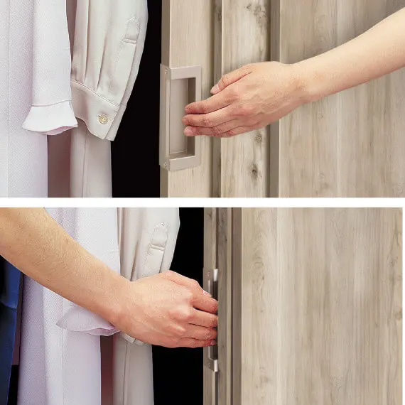 指はさみ防止に配慮した引手※\n全開したとき指はさみの心配がなく、閉める時にも引手がつかみやすいよう設計しています。