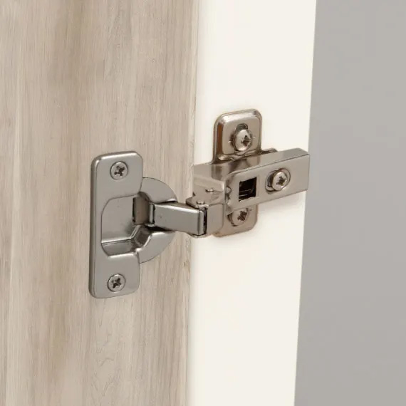 | キャプション | スライド式丁番 施工後の微調整がスムーズにできるスライド式丁番を採用しています。 ※扉は約100°まで開きます。 枠に同梱しています。 座は枠に取り付け済です。 |