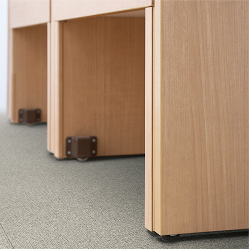 | キャプション | ●本体下部のアジャスター 本体下部のアジャスターを調整すれば床に不陸のある場所でも水平に施工できます。 ※アジャスターの高さ調整約6mm ※上り框のような段差のある場所にはご使用いただけません。ベンチ付タイプは凹凸のあるタイルやコンクリートの上にはご使用いただけません。 |