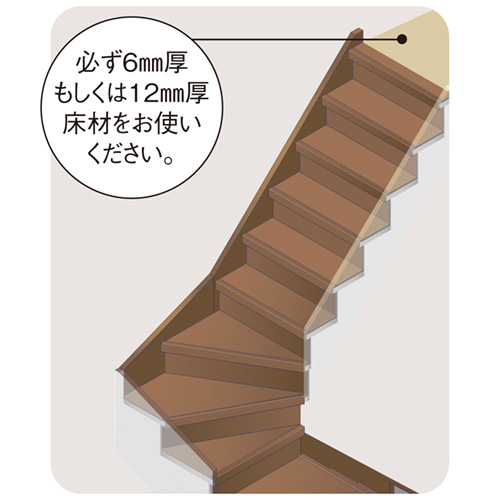 様々な階段のリフォームに対応する6mm厚と12mm厚のリモデル対応部材を品揃えしています。