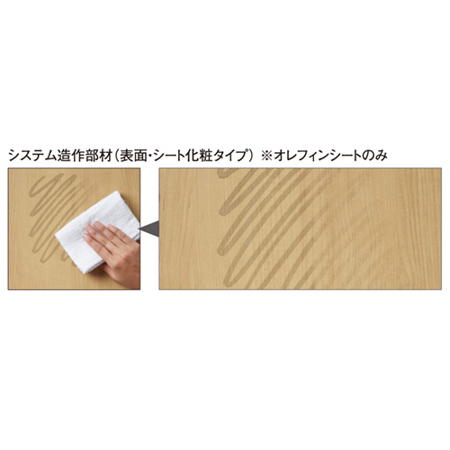 | キャプション | 油汚れも拭き取りやすい撥油性の高い表面シートを採用。 汚れが拭き取りやすくなっています。 |