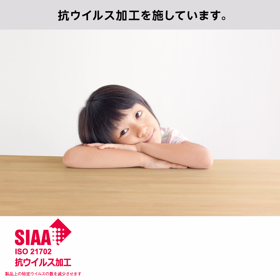 抗ウイルス加工を施しています。\n抗ウイルス加工は、空気中や手から、製品上に付着した特定ウイルスの数を減少します。
