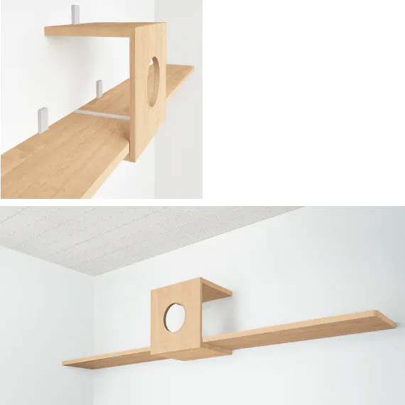 | キャプション | ねこルート 高い場所が大好きなねこのために、部屋中を動きまわれる通り道。ねこ同士がすれ違える幅があります。 |