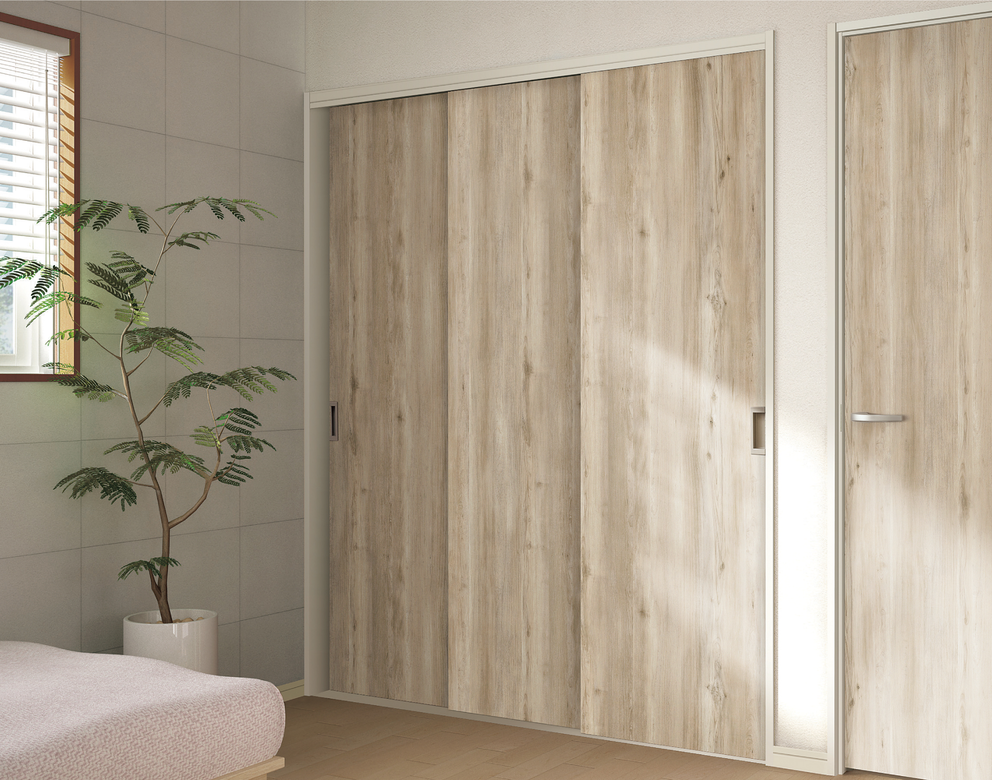 収納:クローク収納 ハピアトレンドウッド調 引戸ユニット フラットタイプ 〈スモークグレー〉
