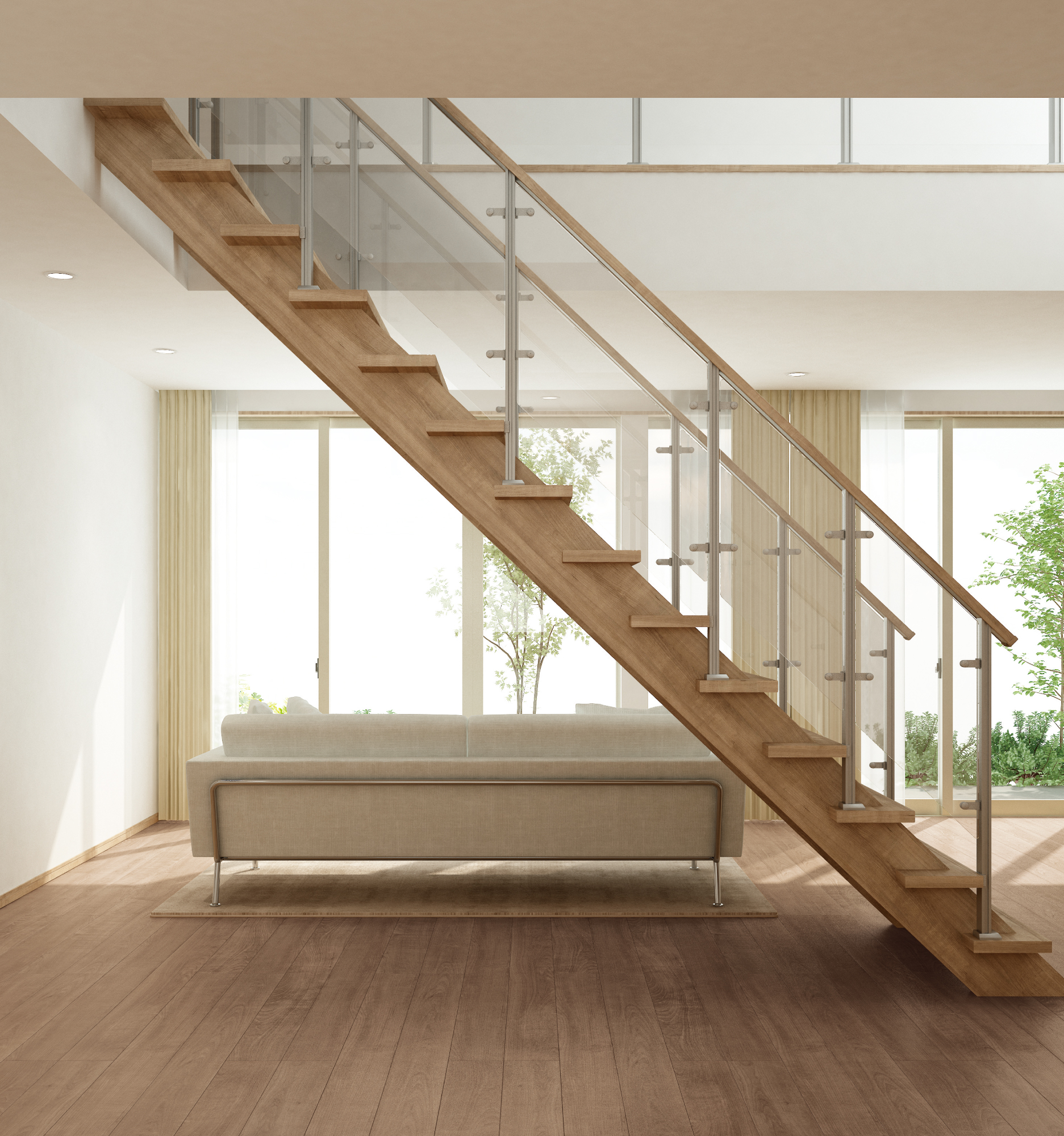 階段:イエリア階段 スタンダード 露出型〈トープグレー柄〉 手摺部材:オープンアルミタイプ〈トープグレー色〉