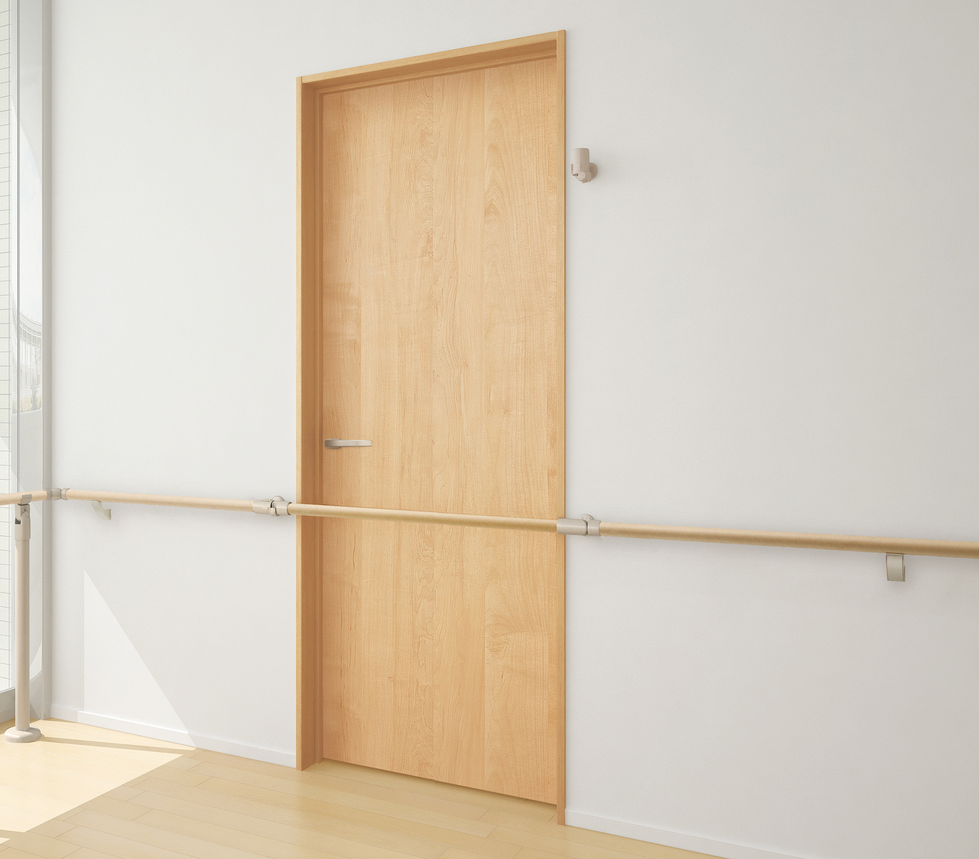 | キャプション | 手摺部材:開口部連続手摺ブラケット〈Tシルバー色〉・キャッチブラケット〈Tシルバー色〉・丸棒ストレート〈ミルベージュ柄〉 |