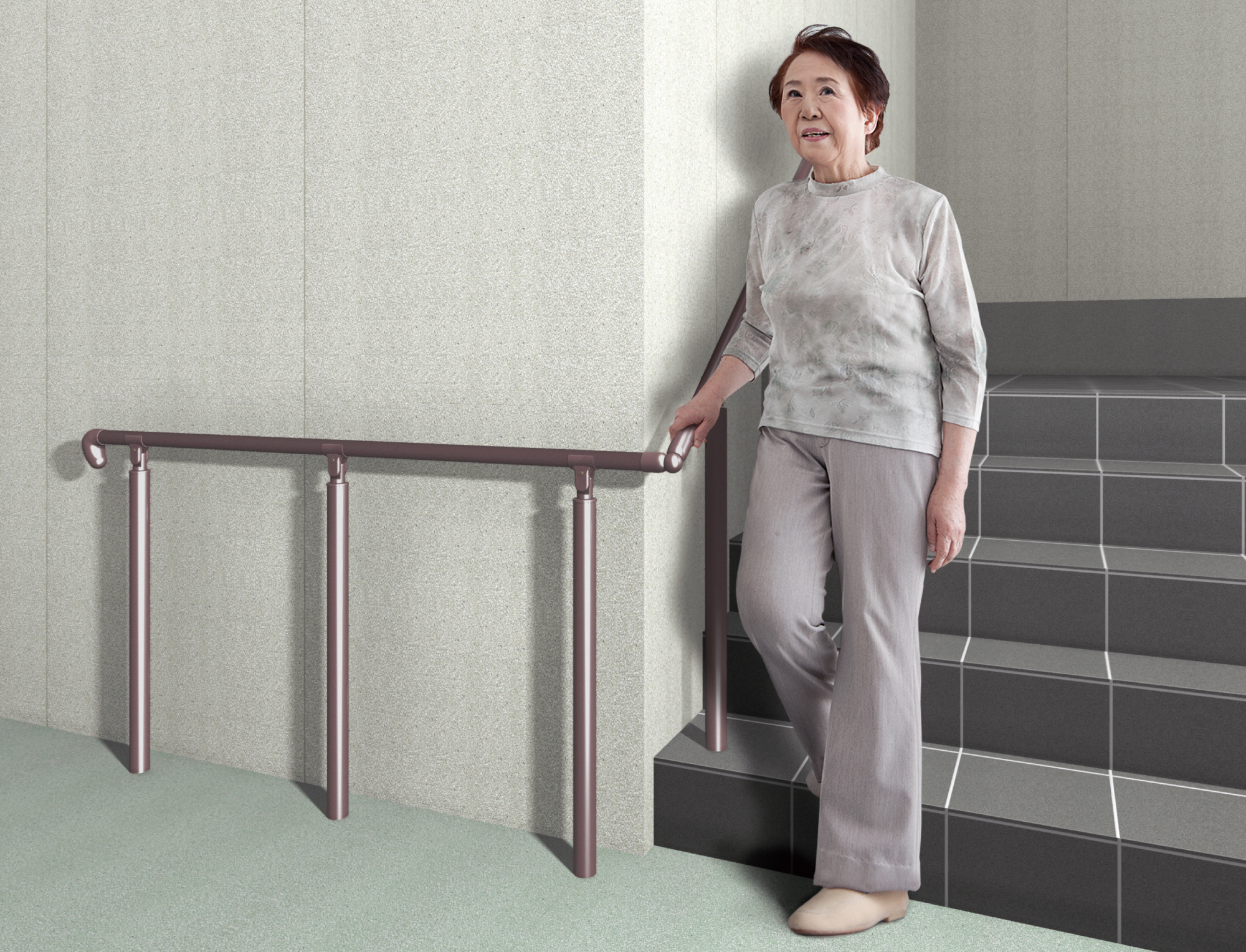 | キャプション | 手摺部材:屋外アプローチ手摺 支柱 (屋外用) 〈ブロンズ色〉 パイプ (屋外用) 〈ブロンズ色〉 自在ジョイント (屋外用) 〈ブロンズ色〉 エンドブラケット (屋外用) 〈ブロンズ色〉 パイプ用アンカー (エンドブラケット取付用) |