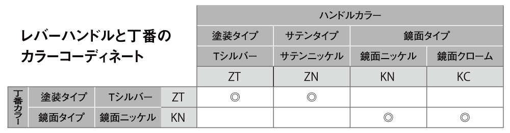 「ずっと ここちいいね」を実現する企業 DAIKEN 建材製品情報 画像 データ検索 jpg G_D_leverhandle_colorcode.jpg レバーハンドルと丁番のカラーコーディネート ファイル種類 コラム画像1カラム 見出し キャプション レバーハンドルと丁番のカラーコーディネート