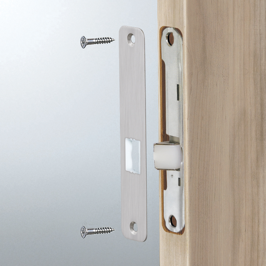 | キャプション | 消音ラッチのつけ替え 扉は出荷時は右吊元になっていますので、左吊元にする場合は、ラッチカバーを外してラッチを回転させてください。 |