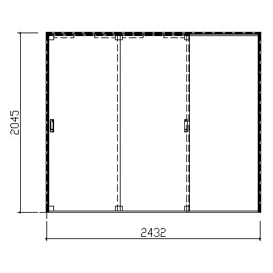 | キャプション | 2432幅 2045高 引手 角座 空錠 敷居(145.4mm) 正面図 |