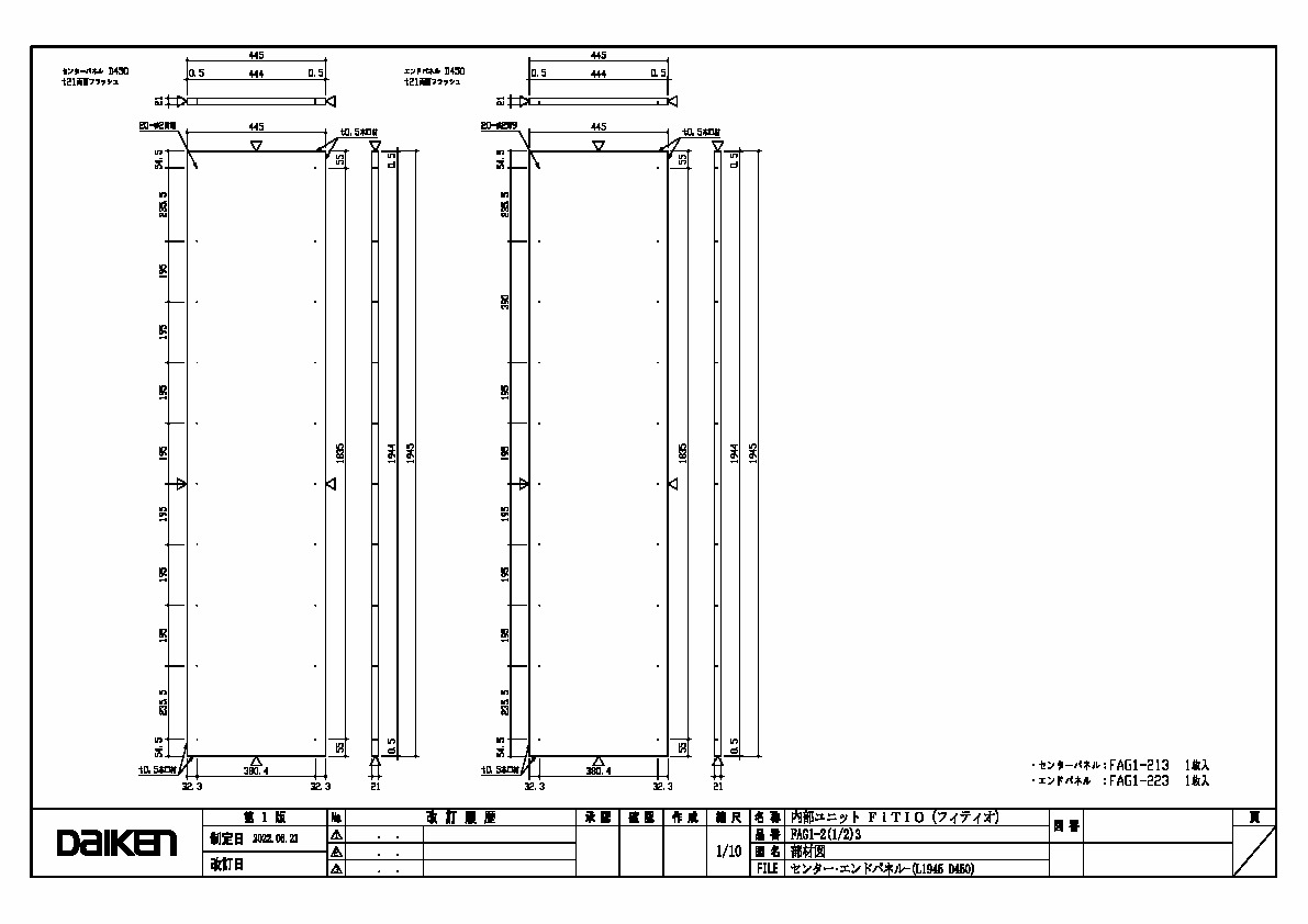 センター・エンドパネル (L1945 D450) 三面図
