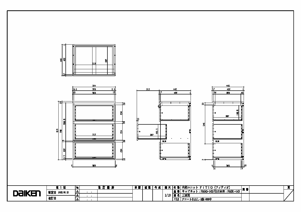 「ずっと ここちいいね」を実現する企業 DAIKEN 建材製品情報 図面 データ検索 pdf Z_D_2022-FITIO-FloatHikidashi-3-600M-1.pdf webp Z_D_2022-FITIO-FloatHikidashi-3-600M-1.webp 製品図 フロート引出し 3段 600中 三面図 データ分類_第1分類 図面 データ分類_第2分類 収納 データ分類_第3分類 内部ユニット データ分類_第4分類 FiTIO(フィティオ) 側面棚柱タイプ データ分類_第5分類 引出し データ分類_第6分類 フロート引出し ファイル種類 製品図 見出し 製品図 キャプション フロート引出し 3段 600中 三面図 改定日 2022/06/21 備考