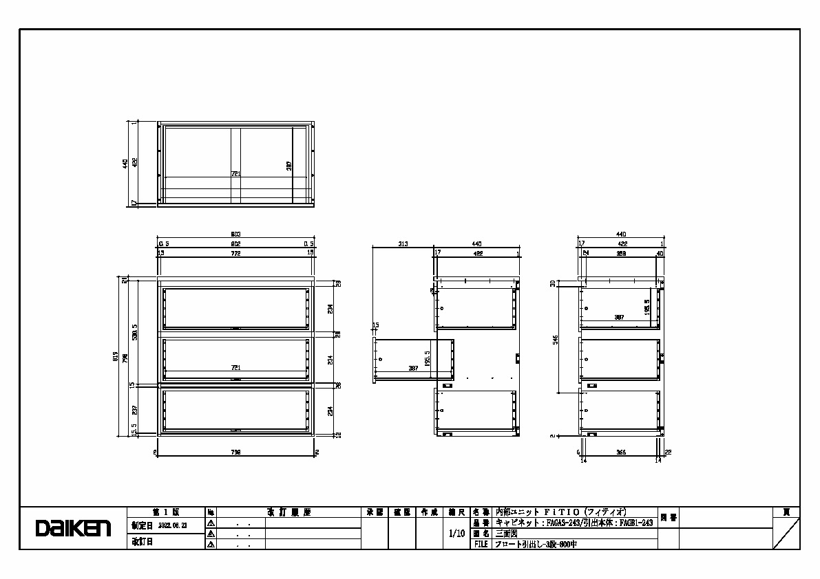 「ずっと ここちいいね」を実現する企業 DAIKEN 建材製品情報 図面 データ検索 pdf Z_D_2022-FITIO-FloatHikidashi-3-800M-1.pdf webp Z_D_2022-FITIO-FloatHikidashi-3-800M-1.webp 製品図 フロート引出し 3段 800中 三面図 データ分類_第1分類 図面 データ分類_第2分類 収納 データ分類_第3分類 内部ユニット データ分類_第4分類 FiTIO(フィティオ) 側面棚柱タイプ データ分類_第5分類 引出し データ分類_第6分類 フロート引出し ファイル種類 製品図 見出し 製品図 キャプション フロート引出し 3段 800中 三面図 改定日 2022/06/21 備考