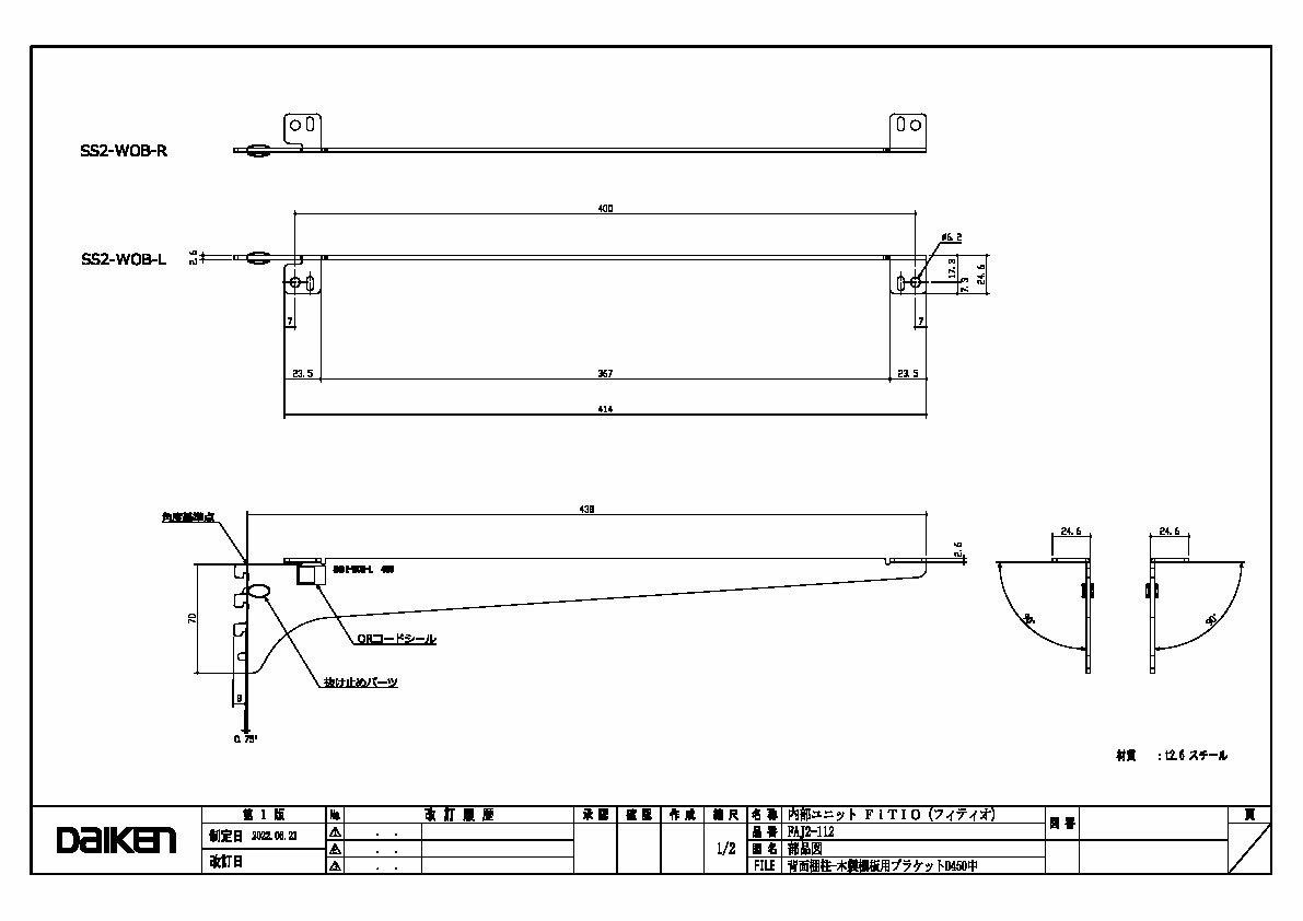 「ずっと ここちいいね」を実現する企業 DAIKEN 建材製品情報 図面 データ検索 pdf Z_D_2022-FITIO-H_WoodsTanaitaBracket-D450-1.pdf webp Z_D_2022-FITIO-H_WoodsTanaitaBracket-D450-1.webp 製品図 背面棚柱 木製棚板用ブラケットD450中 三面図 データ分類_第1分類 図面 データ分類_第2分類 収納 データ分類_第3分類 内部ユニット データ分類_第4分類 FiTIO(フィティオ) 背面棚柱タイプ データ分類_第5分類 背面棚柱製品 ファイル種類 製品図 見出し 製品図 キャプション 背面棚柱 木製棚板用ブラケットD450中 三面図 改定日 2022/06/21 備考