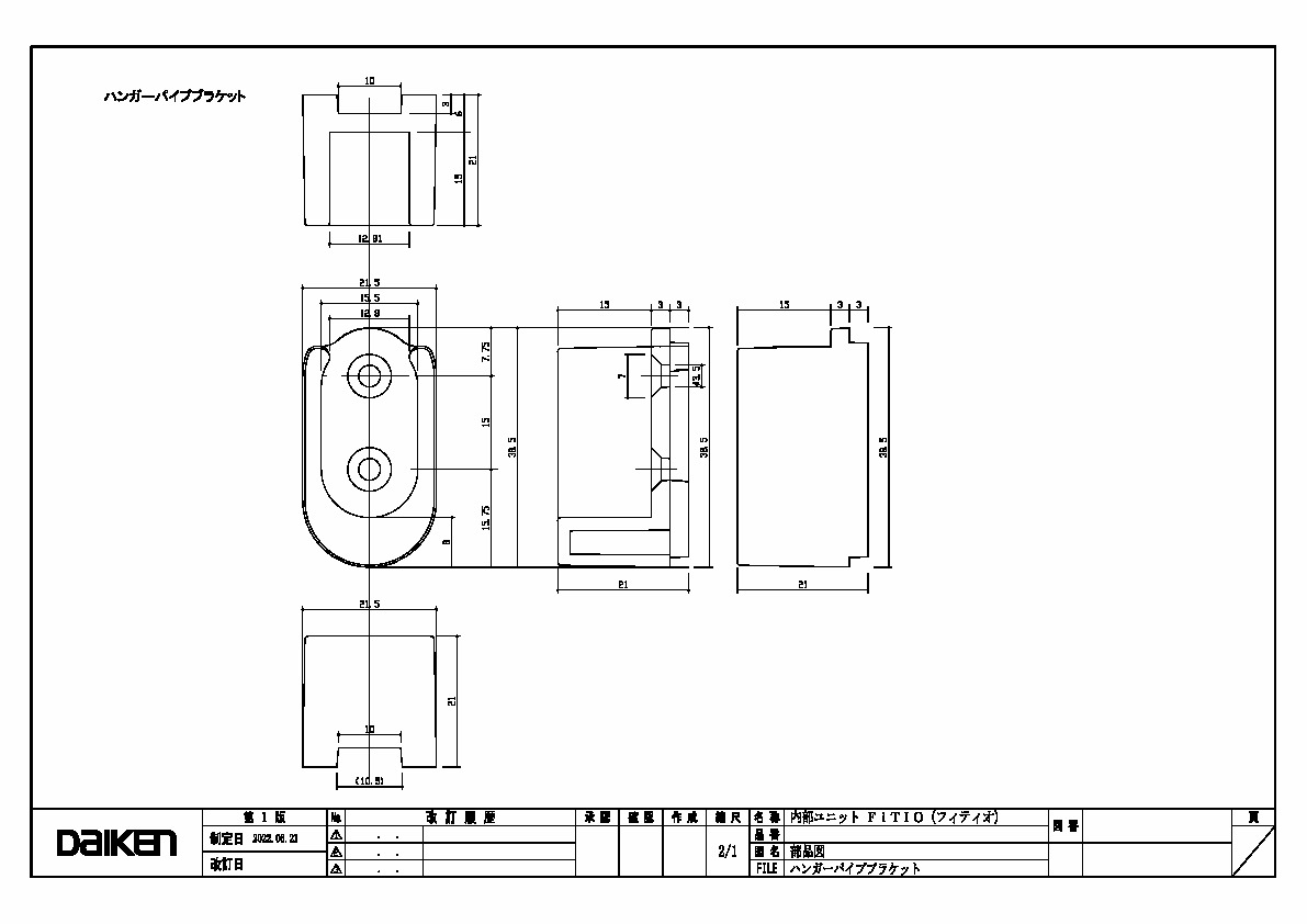 「ずっと ここちいいね」を実現する企業 DAIKEN 建材製品情報 図面 データ検索 pdf Z_D_2022-FITIO-HangerpipeBracket-1.pdf webp Z_D_2022-FITIO-HangerpipeBracket-1.webp 製品図 ハンガーパイプブラケット 三面図 データ分類_第1分類 図面 データ分類_第2分類 収納 データ分類_第3分類 内部ユニット データ分類_第4分類 FiTIO(フィティオ) 側面棚柱タイプ データ分類_第5分類 オプション ファイル種類 製品図 見出し 製品図 キャプション ハンガーパイプブラケット 三面図 改定日 2022/06/21 備考