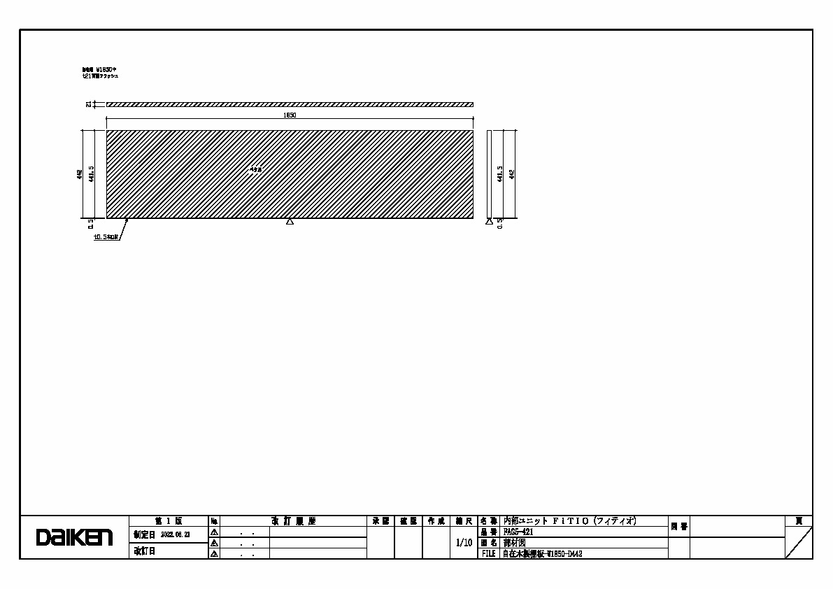 | キャプション | 自在木製棚板 W1850 D442 三面図 |