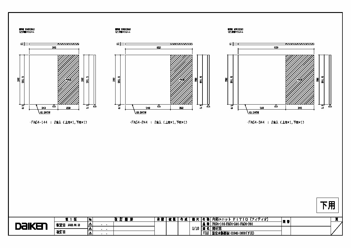 | キャプション | 固定木製棚板 H1945 D600(下用) 三面図 |