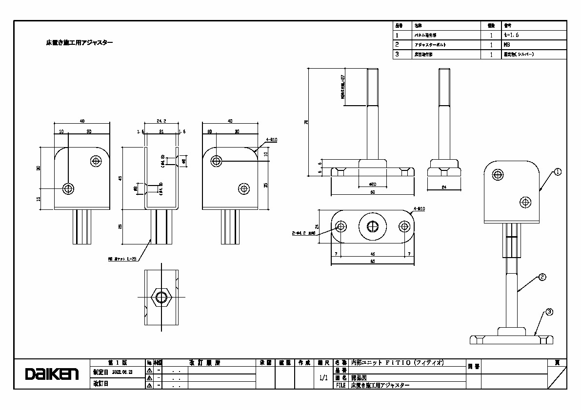 「ずっと ここちいいね」を実現する企業 DAIKEN 建材製品情報 図面 データ検索 pdf Z_D_2022-FITIO-YukaokiAdjuster-1.pdf webp Z_D_2022-FITIO-YukaokiAdjuster-1.webp 製品図 床置き施工用アジャスター 三面図 データ分類_第1分類 図面 データ分類_第2分類 収納 データ分類_第3分類 内部ユニット データ分類_第4分類 FiTIO(フィティオ) 側面棚柱タイプ データ分類_第5分類 オプション ファイル種類 製品図 見出し 製品図 キャプション 床置き施工用アジャスター 三面図 改定日 2022/06/21 備考
