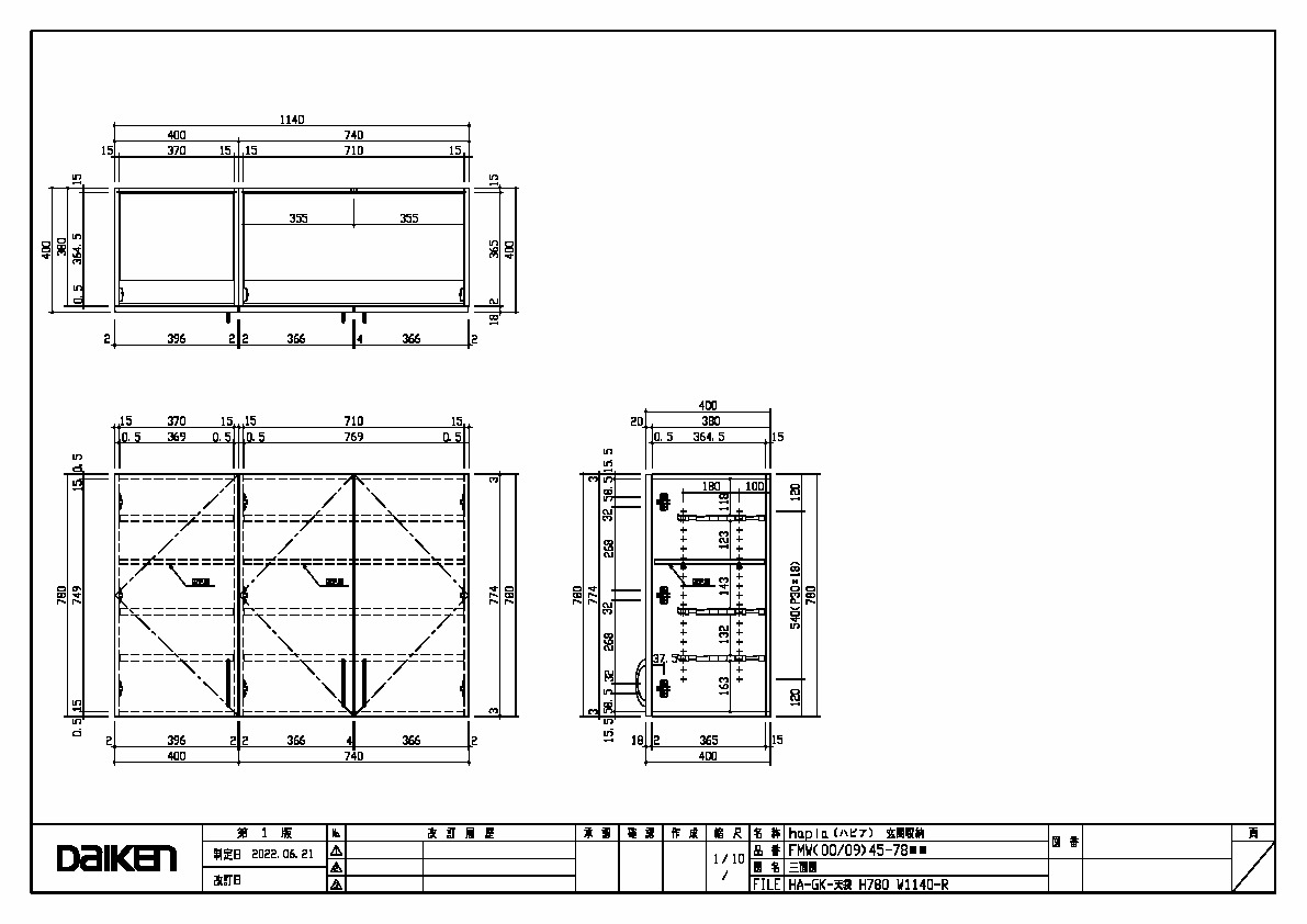 「ずっと ここちいいね」を実現する企業 DAIKEN 建材製品情報 図面 データ検索 pdf Z_D_2022-HA-GK-TN_H780_W1140-R-1.pdf webp Z_D_2022-HA-GK-TN_H780_W1140-R-1.webp 製品図 天袋 1140幅 三面図 データ分類_第1分類 図面 データ分類_第2分類 玄関収納・下駄箱 データ分類_第3分類 hapia 玄関収納 開き戸ユニット データ分類_第4分類 開き戸ユニット プラン用ユニット データ分類_第5分類 天袋 H780 データ分類_第6分類 ハンドルあり ファイル種類 製品図 見出し 製品図 キャプション 天袋 1140幅 三面図 改定日 2022/06/21 備考