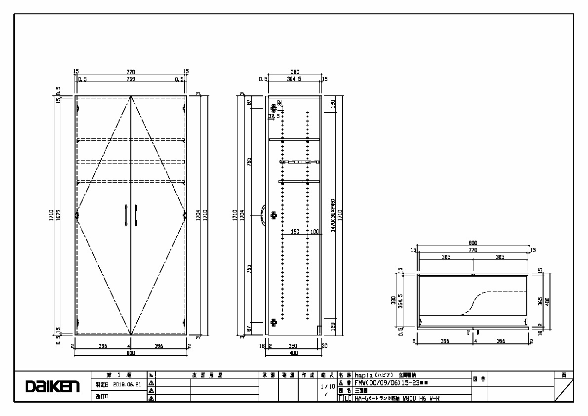 | キャプション | トランク収納 800幅 H6 三面図 |