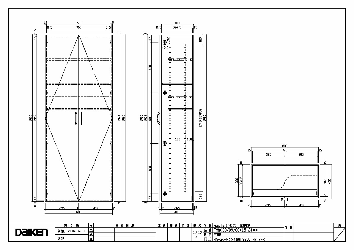 | キャプション | トランク収納 800幅 H7 三面図 |