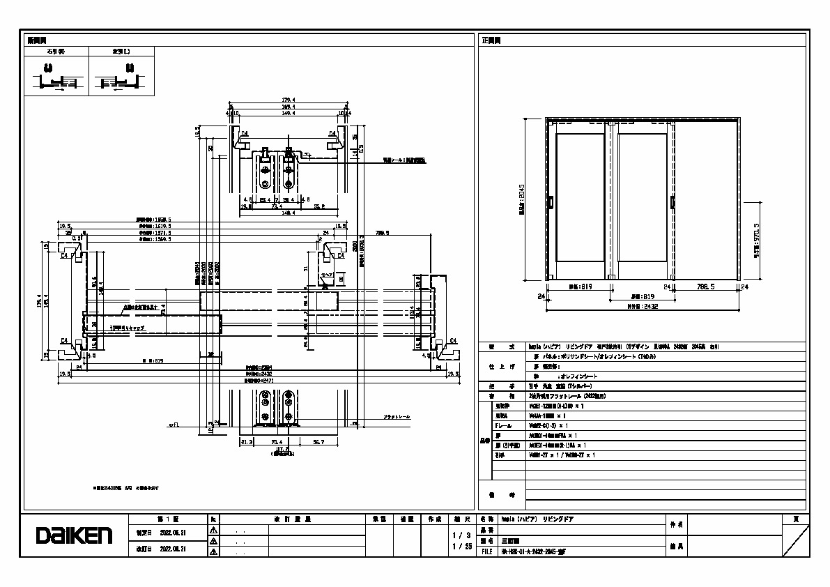 | キャプション | 2432幅 2045高 引手 角座 空錠 フラットレール(2432幅用) 三面図 |