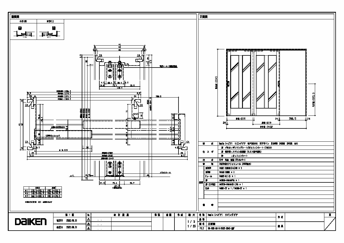 | キャプション | 2432幅 2045高 引手 角座 空錠 フラットレール(2432幅用) 三面図 |