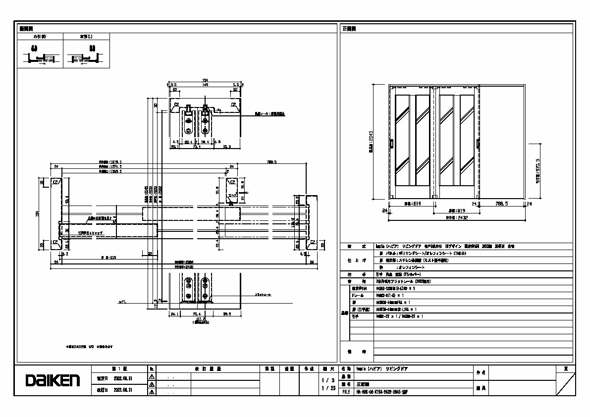 | キャプション | 2432幅 2045高 引手 角座 空錠 フラットレール(2432幅用) 三面図 |