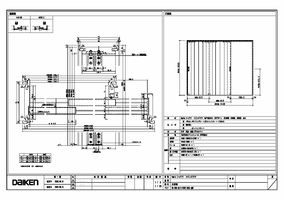 | キャプション | 2432幅 2033高 引手 角座 空錠 フラットレール(2432幅用) 三面図 |