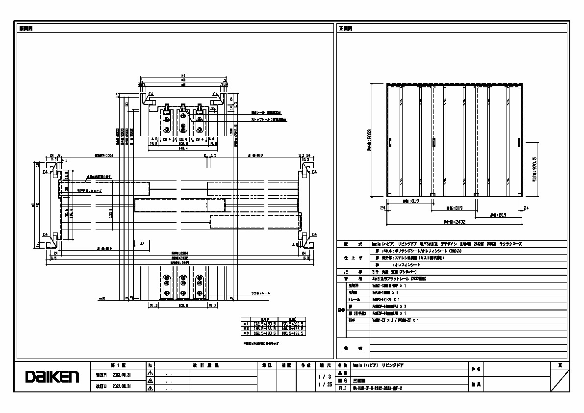 | キャプション | 2432幅 2033高 引手 角座 空錠 フラットレール(2432幅用) 三面図 |