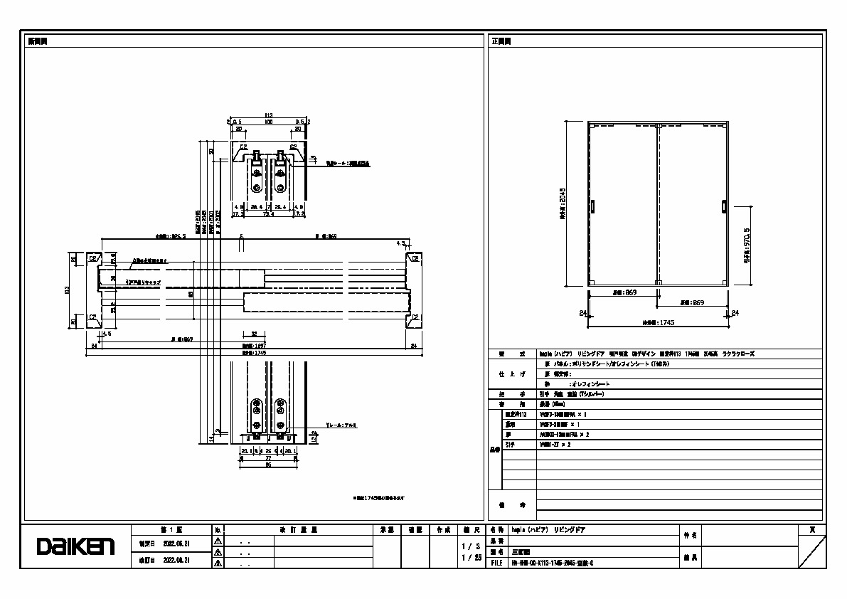 | キャプション | 1745幅 2045高 引手 角座 空錠 敷居(85mm) 三面図 |