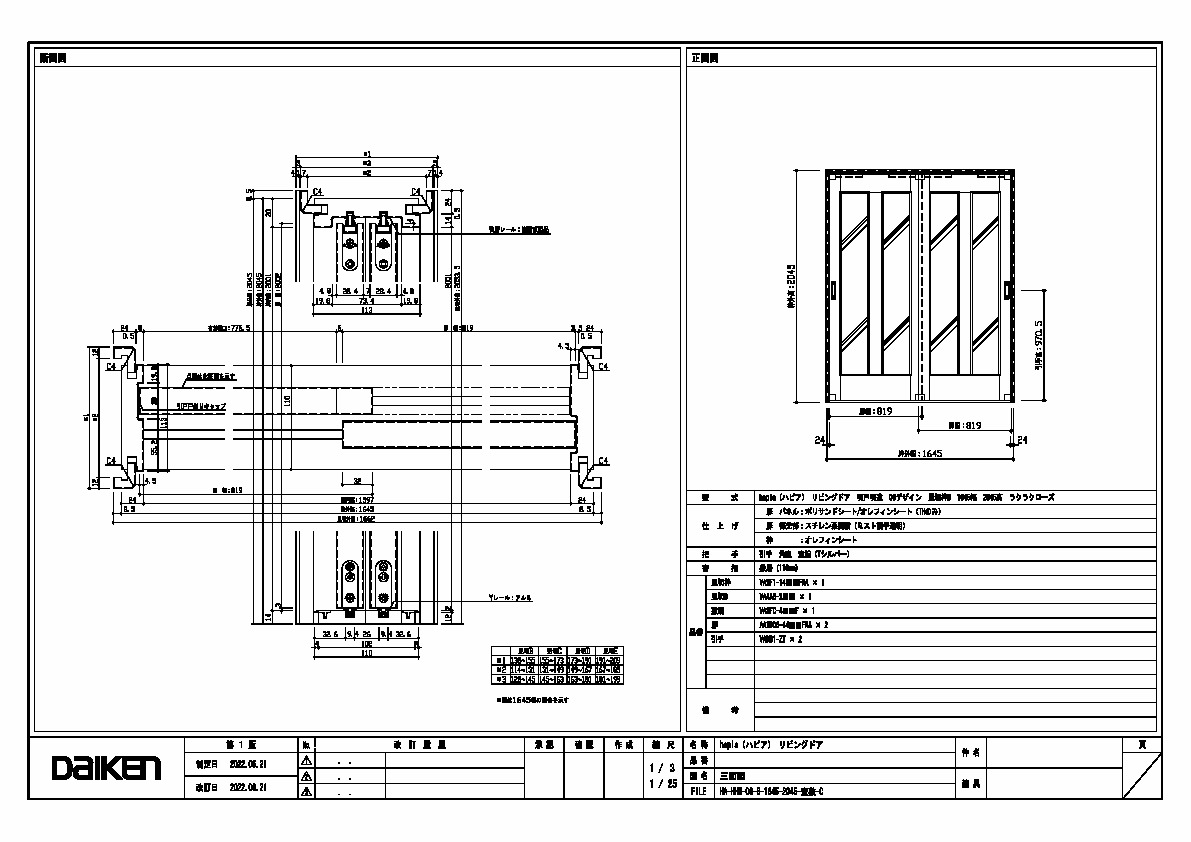 | キャプション | 1645幅 2045高 引手 角座 空錠 敷居(110mm) 三面図 |