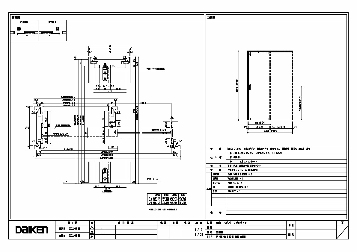 | キャプション | 1315幅 2033高 引手 角座 表示錠 フラットレール(1315幅用) 三面図 |