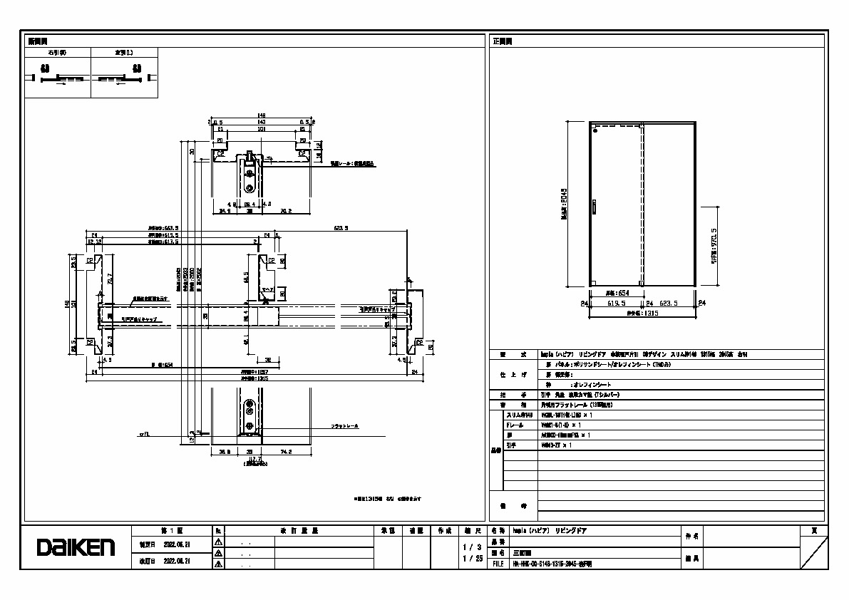 | キャプション | 1315幅 2045高 引手 角座 表示錠 フラットレール(1315幅用) 三面図 |