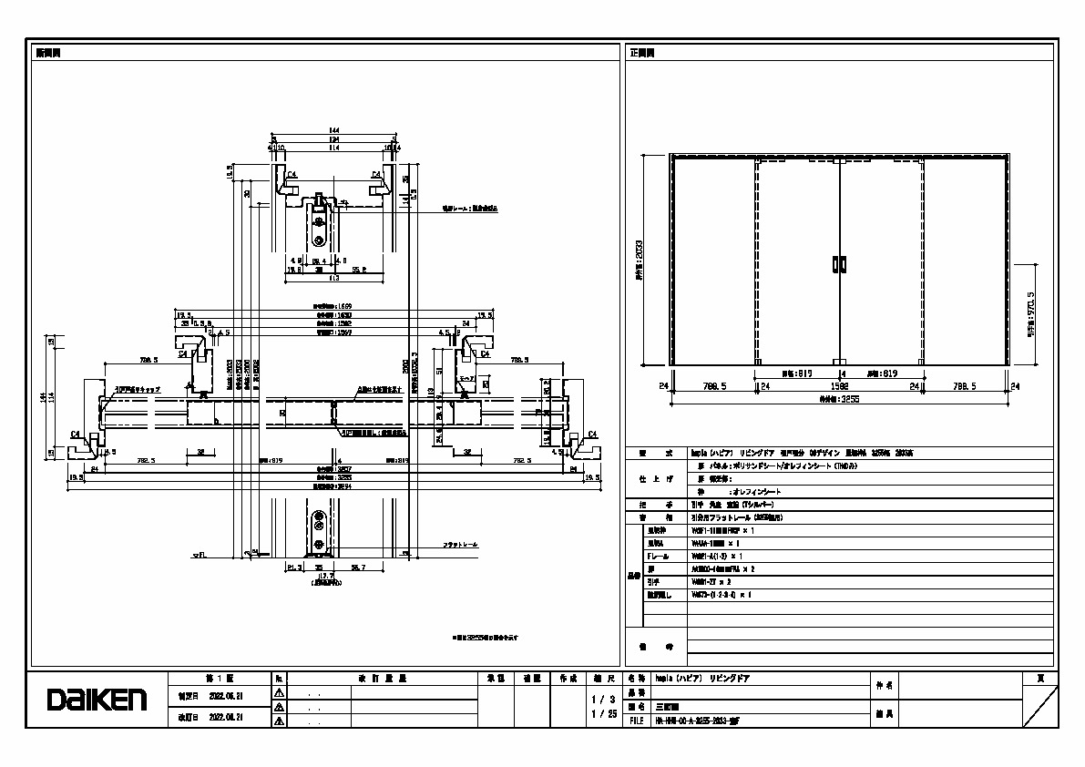 | キャプション | 3255幅 2033高 引手 角座 空錠 フラットレール(3255幅用) 三面図 |