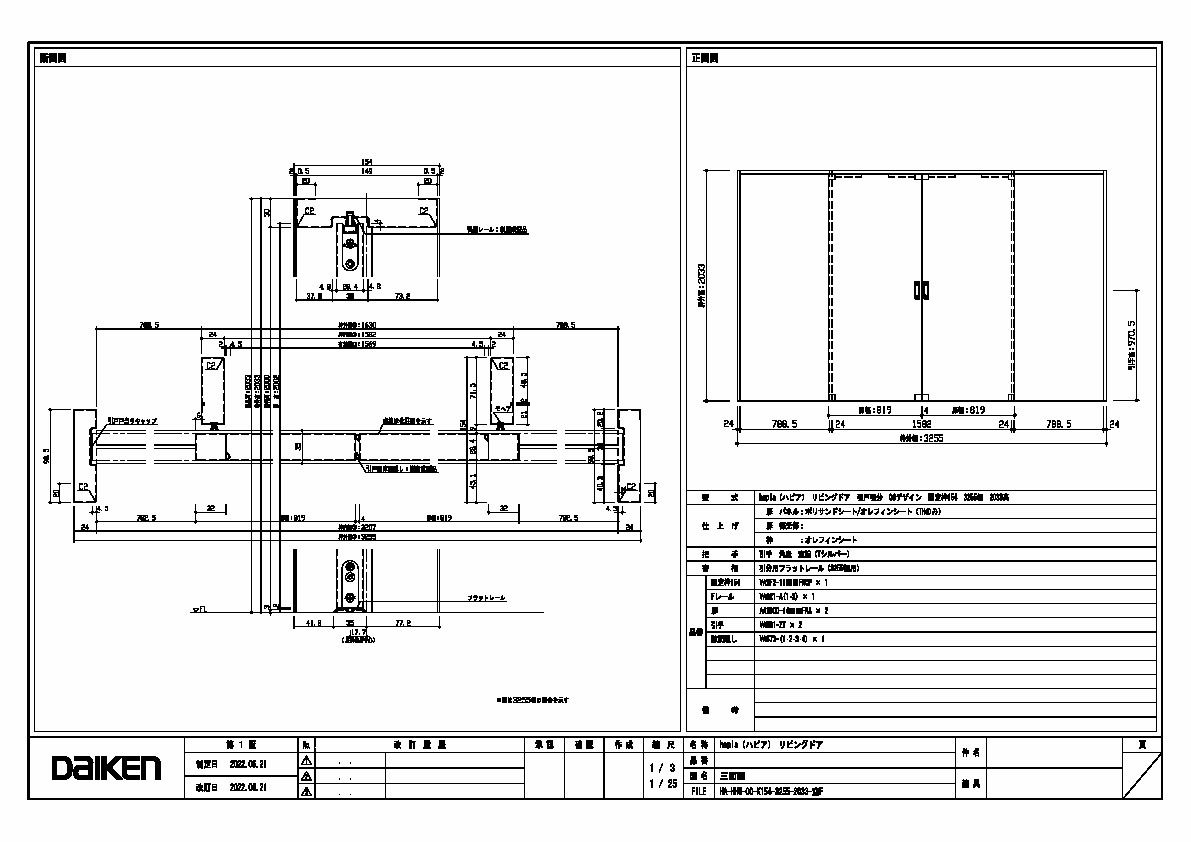 | キャプション | 3255幅 2033高 引手 角座 空錠 フラットレール(3255幅用) 三面図 |