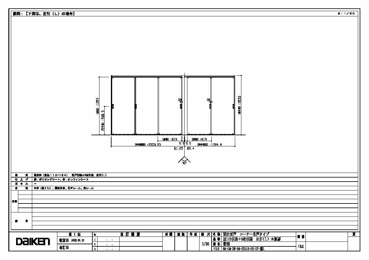 | キャプション | 引違113 + 3枚引違 7尺高 左引 三面図 |